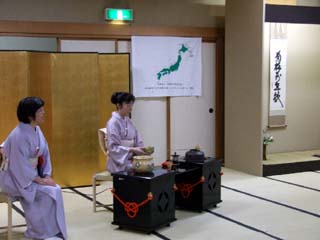 | 6月25日17:30に音別駅で、釧路支部いちい青年部より、お軸とお茶杓と旗を受け取りました。 開催日の26日は平日ということもあり、お茶会の開始は、お客様が仕事帰りにいらしていただけるように18:00とし、お席は御園棚を使用した椅子席にしました。青年部会員20名で、41名のお客様をお迎えしました。 親先生・OB・高校生の皆さんが来てくださり、日の長い夕刻の一時を一服のお茶で楽しんで行かれました。 翌27日10:00、足寄町道の駅で北見支部みんと青年部に無事お道具をお渡ししました。 |