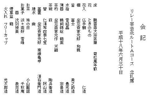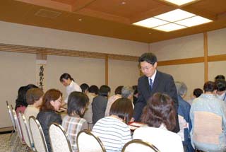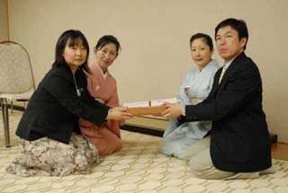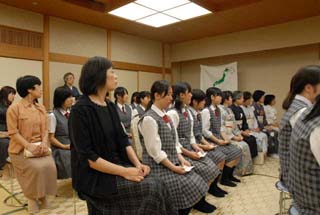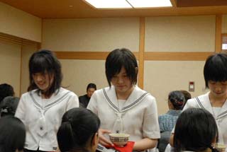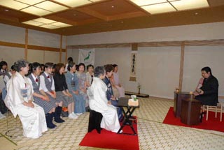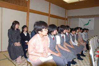 | 昨日、北見支部きたみ青年部よりAコースのお道具を上川町のJR上川駅で引き継ぎ、本日は和親棚での立礼席を致しました。 市内6校(凌雲高校、藤女子高校、西高校、農業高校、聾学校、旭川医科大学)の学生55名とのコラボレーションで、医大の男子学生さんのお点前でお客様をお迎え致しました。 この度はA・B両コース共、大雪青年部が担当するという大変贅沢なお茶会で、多くの親先生、OB、青年部の皆様に喜んで頂きました。 茶会終了後、小樽支部うしお青年部さんへ引き渡し致しました。 お家元様、大宗匠様、ありがとうございました。 |