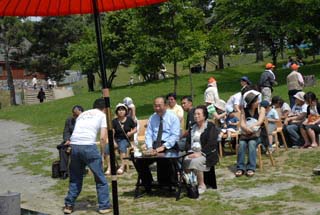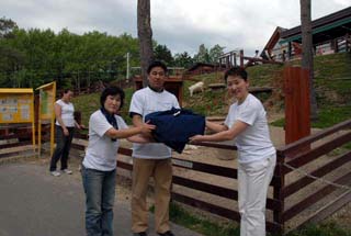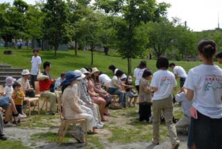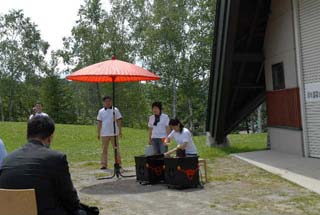 気温29℃という暑さの中、晴れ渡った青空の下、大勢の来園客で賑わっている旭山動物園でリレー茶会を開催致しました。