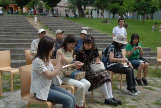 来園客の皆様は日本中からいらしており、リレー茶会についての説明を聞き、また、旗の地図を見て、「京都ではいつ?」「私の地元でも有るのかしら」など関心を持たれた方も多くいらっしゃいました。