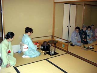 | 学茶の先生を通して学生さんにご案内をいたしましたが、試験を控え、遠慮されたようで、残念でした。 代わりにアメリカからの短期留学生、OBのお嬢様が学校に茶道部が出来たので、友達とともに参加して下さったり、とうれしいことがありました。一席が25名ほどで、茶杓は最後まで拝見に回したところ、皆様よろこばれていました。 この日は昼・夜間と灰形講習があり、日頃夕方5時までの茶道会館を延長してお借りしたところ、お客様の中には『夜の茶席も素敵!』と好評でした。 |