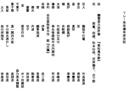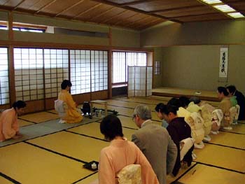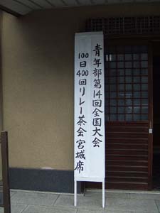 | 薄井ブロック長より引き渡されたお軸とお茶杓には、ご宗家のお心と北海道ブロックの皆様の熱い思いが込められていたのでしょう、重く感じました。本日からの4日間、宮城の地で宮城の青年部の思いを重ねて参りたいと思います。 引き渡されたお軸「菊松万年歓」を早速かけさせて頂き宮城支部岡崎幹事長先生をはじめ、役員の先生方、ブロック役員の方々にお薄茶を差し上げました。 みちのく入りした7月7日は五節句の七夕。皆の「祈り」が届くようにと七夕の趣向に致しました。 |