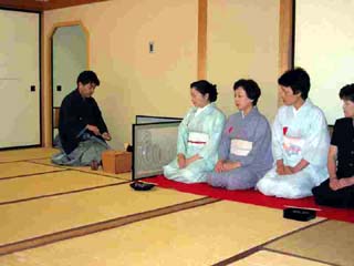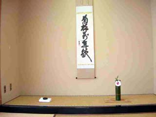 | 全国大会に関わるリレー茶会ということで、今このときに他3青年部がお茶会を開催していることも席中での話題となり、先生方に新たな関心を寄せていただけました。 また、隣室に飾った旗の書き込みから全国的な青年部組織や東北ブロック、県内の青年部についての質問などもされ、常の青年部茶会ではなかなかお話しできないようなことにも触れることができました。お客様から全国大会のご成功をとの祝福もいただき感謝の中でお茶会をさせていただきました。 |