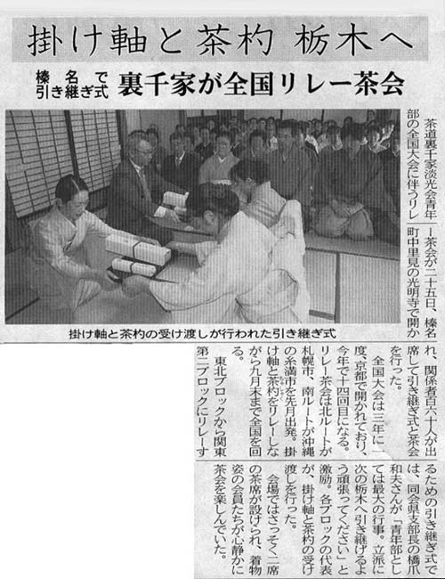 「100日400回リレー茶会」 新聞報道記事