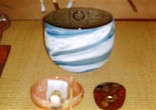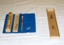 | 銚子青年部では銚子の海にちなんだ道具を取り揃え、夏の夕暮れの一時を涼やかに過ごしていただけるよう心掛けました。また、お客様には大宗匠のお軸、お家元のお茶杓を間近に拝見する機会に恵まれ大変喜んでいただきました。 一方青年部会員は月末の繁忙日にもかかわらず、各々の仕事に都合をつけ、全員の出席のもと茶会にあたりました。また、OBの先輩方にも裏方の仕事を快く手伝っていただき大変感謝しております。 |