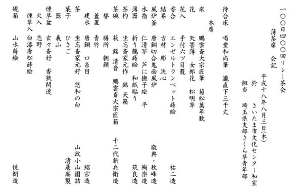 今回のリレー茶会を通して、残念ながら全国大会に参加できない会員の想いもお道具と一緒にリレーして、京都に集った時にはたくさんの想いが詰まったものになると思います。 |