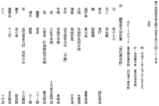 お席のテーマは「夏の思い出」。私たちにとって、この夏の思い出といえば他でもないこのリレー茶会です。