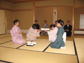 本席では夏から秋への移ろいをテーマにし、また大宗匠の「菊松萬年歓」のお軸にちなんで、金太郎飴製の「不老長寿飴」を皆さまにお持ち帰りいただきました。