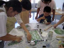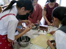 | 川崎支部青年部連絡会では、関東第三ブロック初日のいさご会館北ル−トBコ−スに続き、北ル−トAコ−スの大宗匠お筆「菊松萬年歓」とお家元作「天籟」を鎌倉支部青年部連絡会より引き継ぎました。 今回は、県立川崎高校の茶道部にお邪魔させて頂き、午前中はお干菓子作り、午後から近隣の中学・高校の茶道部の皆様をご招待し茶会を催しました。 |