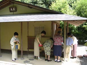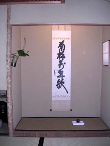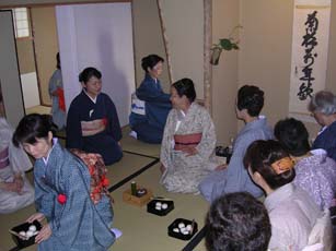 Aコースは、4畳半の萩庵の落ち着いた雰囲気の中でお席を務めさせていただきました。松韻亭は、年に1度の青年部茶会の会場でもありますが、大勢の方のご来場をお願いしたいことから広間席と立礼席をよく利用し、小間の萩庵はなじみがありませんでした。慣れないながらも、貴重な良い機会をいただいたことを、萩庵の担当者らは「これもリレー茶会のお陰」と感謝しておりました。