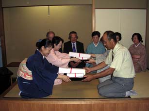主茶碗とお替えの茶碗は、青年部会員が浜松支部の初茶会福引で引き当てた楽茶碗を対(つい)でお披露目するなど、全国大会に向けたリレー茶会の意義と支部内の身近な話題をお伝えしながら茶席を和やかに進めることができ、この茶会を通して、いろいろな意味で支部先生方とのつながりを強くすることができました。