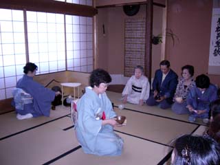 | 平日開催なので四日市青年部と同じ会場で11時〜19時までのロングランのお茶会にしました。お手伝いの会員も前半は主婦中心のメンバーで子供が学校から帰る頃には家に戻り後半は学校、仕事を終えたメンバーがかけつけるというお手伝いもリレーをするリレー茶会でした。それでも後半のメンバーがくるまで水屋が二人になってしまい、四日市青年部の人やお客様として来てくれた連絡会の人たちが手伝って下さいました。お陰で8時間という長いお茶会を無事終了することが出来ました。 |
