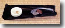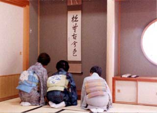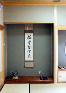 床の間にお軸を掛け、お茶杓を飾って呈茶。