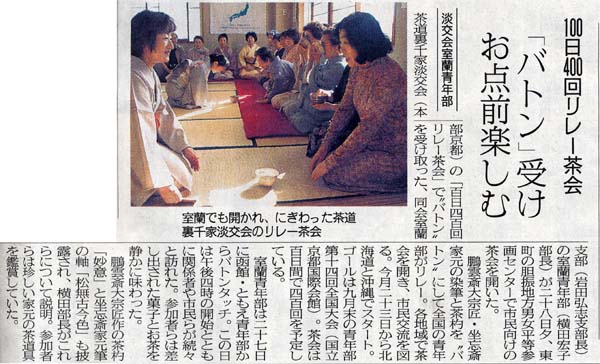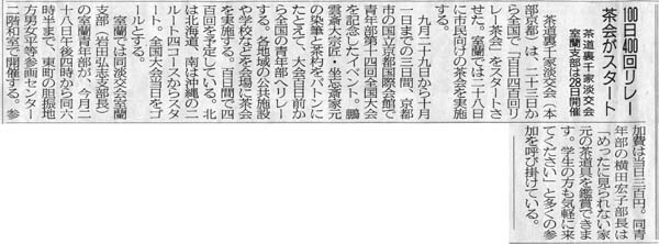 「100日400回リレー茶会」 新聞報道記事