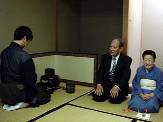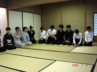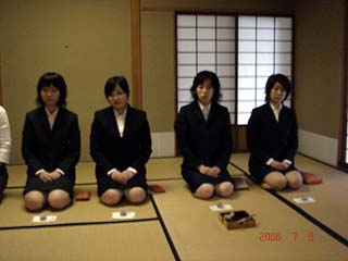 | 宮城県仙台市の宮城支部研修道場での3日目のお茶会が終了しました。 本日は宮城支部の藤井支部長さまもお忙しい中、ご来席くださいました。他にも親支部の先生方、青年部正会員・青年部OBそして学校茶道の大学茶道部の皆様(東北大学学友会、東北福祉大学茶道部)にもお越しいただきました。 坐忘斎お家元さまにご染筆いただいたお軸の中廻しが「飛笹紋」になっていることを説明すると、南ルートの対句のお軸の中廻しは「松」かしら?と南ルートのお軸にも思いをはせる声も聞かれ、全国大会でお目にかかれることがますます楽しみになりました。 |