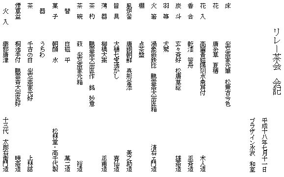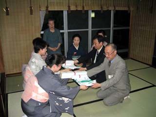 | 奥州市プラザイン水沢において開催、115名が参加しました。 おかげ様で梅雨の晴れ間の良いお天気に恵まれ、厳粛な心持ちで御染筆・御茶杓に対面いたしました。 私達銀河青年部は立礼 点茶盤でおもてなししました。受け取ったお道具にふさわしいような品のあるお席になるように努めました。せめてお茶はおいしくいただけますように、束稲山の水を用意しました。おいしいと言っていただけたのがとても嬉しかったです。 御染筆と御茶杓が全国の青年部の手から手へとリレーされていくその過程で、会員の様々な思いが込められていくのだと感じました。このような意義のある大行事のひとこまに参加させていただけると言う畏れと光栄の念を感じずにはいられません。全国大会で感動のフィナーレを迎えられますことをお祈り申しあげます。 |