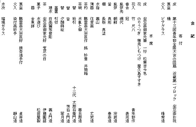 少人数でフル回転でしたが、皆さんに喜んでいただこうとの気持ちが前面に出て、とても楽しく和やかな席になったことは協力してくださった先生、社中、会員のお陰と感謝いたします。 |