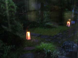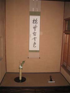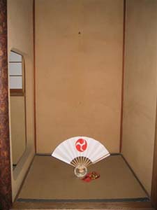 路地からにじり口を通り小間から(小間の床飾りは、神輿の扇子と七五三の鈴)本席へ。