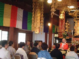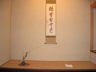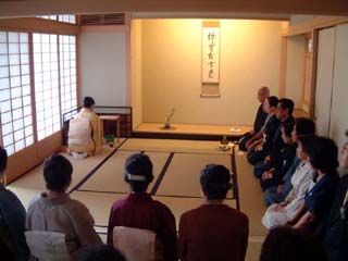 | 前日、茨城県つくば青年部の夕ざりの茶会に出席させていただき、ご宗家のご染筆とお茶杓をお預かりして参りました。 茶会開始に先立ち、11時20分より鷲山寺の本堂にて大塚日正大僧正様に『世界平和と子供たちの幸福を願い』ご祈祷していただきました。大僧正様は「私達宗教家が率先して行わなければならない平和への祈りを茶道の青年部が行っている事に恥ずかしさを感じた。これからは宗派に捉われず協力し合って当たってゆくことが必要だ。現代は日本人が本来持っていた大切な心である恥を知る心∞ほこり∞敬いの心∞祈り≠失ってしまっている。医療の新分野では、祈りの治療効果が注目され、ハーバード大学、コロンビア大学などの権威ある大学が、競ってこの研究に乗り出している。自らも祈り、まわりの人達からも祈られている病人は、祈りの無い病人に比べて明らかに治療効果があらわれているそうである。」とお話され、最後にインドの詩人タゴールの『わが祈り』「苦難ある時、われを護れよとはわれ祈らず。われをして苦難を怖るる事無き者たらしめよと、これわが祈りなり。われを救えとはわれ祈らず、われをして艱難を乗り超えるに足る力の所有者たらしめよと、これわが祈りなり。わが重荷を軽くせよとはわれ祈らず、われをして重荷を荷うことを得る者たらしめよと、これわが祈りなり」をご講話下さいました。 |