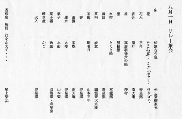 | 青年部会員4名、青年部OB4名、計8名で茶室、香煎席、水屋を分担し茶会を実施しました。 花入・薄器・水指・替茶碗・建水・菓子器は青年部会員手作りの道具で、お客様にも好評でした。 お茶杓も最初は飾り置いていましたがブロック役員の方がお見えになり使ってくださいと言われまして、3、4席は使わせていただき、お客様も手に取り拝見され『大宗匠のお茶杓に触れられて感激』と喜んでいらっしゃいました。 平日の昼間という事もあり、参加者が少なかった為1席をゆったりと時間が取れました。 |