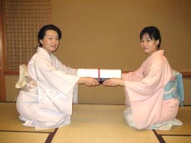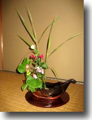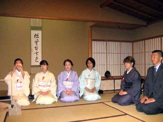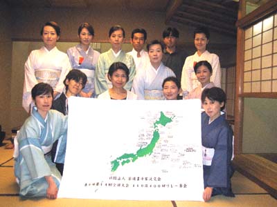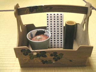 | 立秋を過ぎ、お盆も終わって、そろそろ各地の花火大会も終盤の頃。リレー茶会も後半に差し掛かった8月17日、わが世田谷白雲青年部の手元にお道具「松無古今色」のお軸と「妙意」のお茶杓が回ってきました。たった一晩でしたが、みなさんの思いの詰まったお道具を我が家にお招きすることが叶いました。準備も済み、静こころで過ごす晩でした。 『ヒートアイランド激しい都心で、新宿の雑踏を抜けてきていただく大勢のお客様に、せめてひとかけらの「涼」をお届けしたい…』私達のリレー茶会は、そんな気持ちから組み立てが始まっていきました。 たくさんの思い出が生まれる夏、だからこそ、夏の終わりはなんとも言えない余韻とセンチメンタリズムを伴うものです。 昔から変わらない「夕涼み」の情緒と、懐かしい江戸の下町風景を茶室へどう引き込むか、会員一同での試行錯誤が約2ヶ月間、続きました。 あっちへこっちへ、私達の突飛とも思える発想に、それでも根気よく付き合ってくださる育成委員の先生方…。納得しながら進めることの幸せ! 会場は吉田五十八設計の新数奇屋建築の料亭。エレベータで地下へ降りると石畳に行灯が並ぶ露地があります。そこへ江戸風鈴と蜩の音を添えて出迎え、縁台へ置いた将棋盤にて一指ししていただき、団扇、ブタの蚊遣り、金魚鉢…と懐かしい路地の風景を過ぎて茶室へと。 床の間には、松・舟・さざえで海風を、隅田川籠に盛った鮎と団扇で川風を、お客さまの心の中におこしたい、と祈りました。 たばこ盆に置いた手製の、豆絞りで作った「たとう」は笑みを誘いました。「すっかり寛いじゃって永居してしまったわね」「楽しい席だった」「ほっとした」という賛辞には、暑さも眠さも忘れ、自分たちが癒されるひと時となりました。青年部が、リレー茶会が、江戸の風情が…無事に続くことを祈りながら、旗へサインして無事にお道具の引継ぎを終えることができました。そして仲間との本当の夕涼みを、目一杯、夜がふけるまで楽しみました。 |