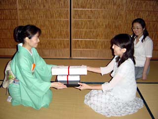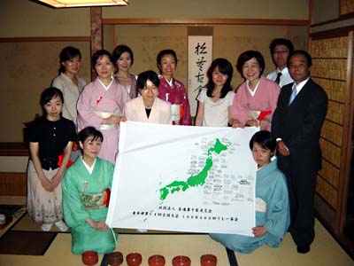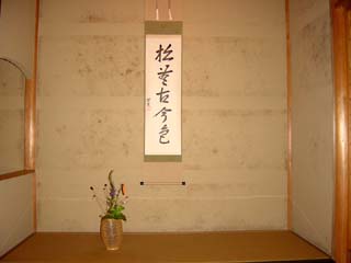 | 台風一過の太陽の下、少しでも「涼」を感じていただこうとお客さまをお招き致しました。とはいえ大きなことはできませんので、我が家にお客さまをお呼びした心持ちで皆さまをお迎えしました。 お茶事形式にまず軽くお点心をお召し上がりいただき座を移りお薄を一服。床は坐忘斎お家元の「松無古今色」、前回の全国大会チャリティー展観にて会員が射止めた手付き籠に笹百合・沢桔梗・ほととぎす・山菊・吾亦紅、お香は飾らずにお部屋に焚きました。 点前座は、ドイツ製ポットを瓶と瓶掛に見立て、手付き籠に蝉型に帛紗を結び盆略点前。夕顔蒔絵の棗に坐忘斎お家元の茶杓「妙意」を使わせていただき、お点前さんも緊張と感動の一瞬でした。建水には、目に涼しい銀色の乾漆を用いました。 お菓子は葛仕立ての黒糖味、紅谷製「奥岩水」。 数茶碗には、恥かしながら青年部行事で会員が製作した赤楽茶碗をお披露目させていただきました。講師の平野誠先生にもご参加いただき、その時の思い出話にも花が咲きました。 お水屋では会員の他、立教大学の茶道部にもお手伝いいただき、新鮮な風をふりまいていただきました。 始めるまでは不安で一杯でしたが、ご参加いただいた親先生、お茶室をご提供くださいました寿泉堂さんと、皆さまのお力添えをいただき、無事次へ引き継ぐことができました。感謝申し上げます。 最後は、明日の担当青年部部長とお軸を拝見し、巻き上げました。 これから迎える方々の、ご盛会をお祈りいたします。 |