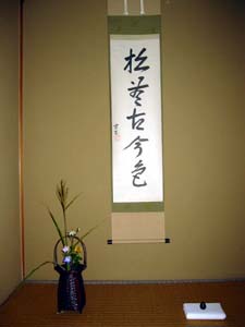 | 蝉しぐれの鳴り響く都会のオアシス清水谷公園「偕香苑」(千代田区)にて薄茶席をしつらいました。この残暑を乗り切っていただくよう、寄付では酸素水にてもてなしました。薄茶席では、6月に青年部行事にて作製したガラスの茶碗を早速お披露目し、涼しげで素敵なお茶碗と好評でした。 30℃を越す、残暑厳しい中、また平日にもかかわらず、お席にお越しいただき、たいへんうれしく思っております。 また、今回のリレー茶会を開催するにあたり、諸先生方、先輩方のご協力、ご指導頂きましたこと、心より感謝いたします。 これからも、お茶会を開催できる平和な世の中が続くよう、祈りつつ、お家元のご染筆と大宗匠のお茶杓を、次の担当の野川青年部部長に引き継ぎました。 |
