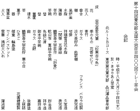 | ■ 会 場 | 品川区立総合区民会館「きゅりあん」茶室 | |