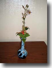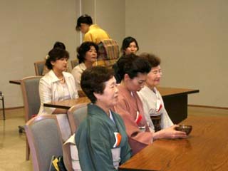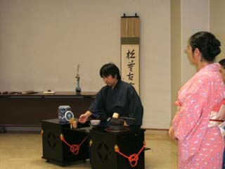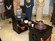 | 育成委員会のご支援をいただいて行われた、午前の部では、先生方、青年部未入会の方、午後の部は他支部の青年部の方を中心にお越しいただきました。 ぴあ青年部と協力して、広い中会議室を立礼席に設えました。全国大会のテーマである「祈り」から「太陽信仰・太陽」そして「向日葵・秋の豊かな恵み」。 向日葵の棗、ぶどう文の水指、瓢のお釜、三方には奉書を敷いて野菜をのせて。鶴首の花入ならば、亀も出さねば(大亀老師の「小亀香合」)。楽しい連想ゲームでした。 坐忘斎御家元お筆の「松無古今色」と鵬雲斎大宗匠お作の「妙意」を使用させていただき、あらためて意味を深く考えたお茶会になりました。 お客様には、間近でお軸とお茶杓にふれていただく、滅多にない機会です。じっくり時間をかけて拝見していただきました。 とても楽しく準備ができました。きていただいたお客様も楽しんでいただけていたらとても幸せです。 全ての関わっていただいた方に感謝もうしあげます。 |