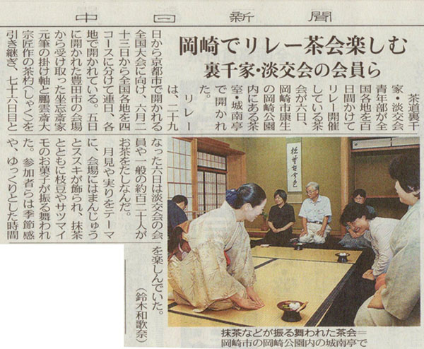 「100日400回リレー茶会」 新聞報道記事