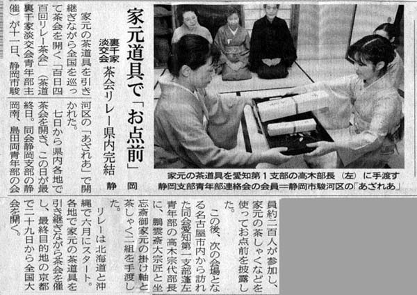 「100日400回リレー茶会」 新聞報道記事