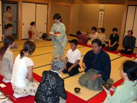 | 今回のリレー茶会は青年部OBの先輩方にもご協力いただき、青年部席とOB席の二席で開催させていただきました。 当日は心配された雨もなく、初秋の穏やかな天候の中、幹事長はじめ親先生方、OB、青年部会員の方々など、120名の皆様にお越しいただき、盛大に開催することができました。 会員同士も今回のテーマ(祈り 一碗から平和を)を確認しながら、お家元と大宗匠のお軸とお茶杓を使わせていただき参加いただいた皆様同様大変感激している様子でした。 全国の青年部会員の手によって、長い道のりを経て、飛騨高山の地に繋げられ、そして次に繋げさせていただく縁に感謝そして感動し、あらためてテーマについて心をひとつにすることができ素晴しい一日となりました。 このような機会をいただけました、お家元、又ご指導いただきました先生方、先輩またご参加、ご協力いただいた皆様に心より感謝申上げます。ありがとうございました。 |