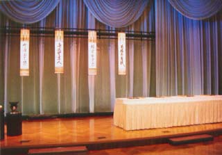 | この日の地元、京都4支部10青年部で迎えさせていただくのは大変光栄な事で、宝ヶ池プリンスホテルのゴールドルームの正面に南北4コースのお軸をかけさせていただき、皆様をお迎えしようということになりました。 長蛇の列には大変驚き、水屋も大慌てとなり、一丸となってのお運び・茶筅振りの光景もなかなかのものでした。 お菓子は叶匠寿庵・老松、薄茶は福寿園・松籟園の協賛で開催することができました。 大宗匠様、お家元様にお越しいただくことができ、最後の思いをプラスして、無事に100日目のお席の方々へ引き継ぐことができ、安堵しました。 |