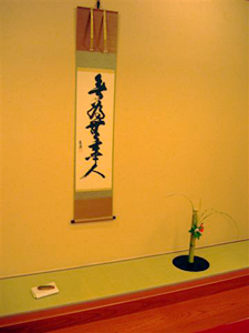 長崎市中心部にある、市民会館の和室にて ”出会い ”をテーマーに鵬雲斎大宗匠のお軸、坐忘斎お家元の茶杓との出会いに感激と感謝の気持ちで、お茶一服差し上げる事にしました。