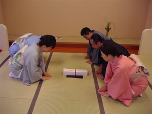 今回子供さんや外人さんが20名以上は見えたようですが、嬉しかったのは、抹茶を美味しいと言われ、残された方がいなかった事です。忙しい中にも水屋では一つ一つのお茶を精魂込めて点てました。あっという間に3時を迎え、長崎からいらしたおたくさ青年部の方へ引継ぎ式を行い、無事にリレー茶会を終わる事が出来ました。鹿児島から来て頂いた迫田ブロック長にも御礼申し上げます。