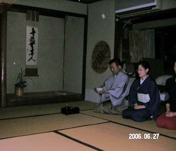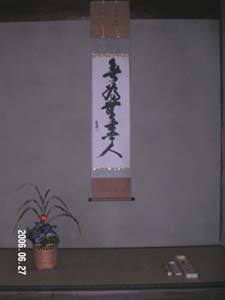 | 神尾宗愛先生のお稽古場をお借りして、午後2時からと午後8時からの2回、茶会形式で行いました。火曜日の午後はお稽古がないので、2週間前にポスターをつくり、参加者を募ったところ、社中内外あわせて10名の方の参加がありました。席中ではお道具のほか、ホームページの引渡し式の様子や、4ルートの地図をまわして見ていただきました。 参加者からはこの1日の機会に巡り合えてよかったという声が聞かれました。 夜の部は仕事帰りの稽古の方たちがみえるので、6時から全員がそろう8時まではそれぞれの稽古をして、全員と次の担当であるびーどろ青年部の代表がそろったところで、茶会を始めました。 「無為無事人」のお軸と「燈心」のお茶杓の意味をそれぞれに考えながら、お道具を拝見し、全国大会への参加者は9月の再会を楽しみに、一会を終えました。 お菓子は「笹巻」寿福製、お茶は淡々斎好「比古の白」日向屋詰、花は籠にがんぴ、桔梗、額あじさい、岡虎の尾、矢筈芒の5種。 出島青年部大野からびーどろ青年部後藤部長と連絡会の川口代表へお道具を引き渡して終了しました。 |