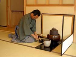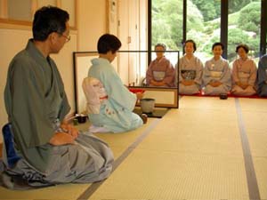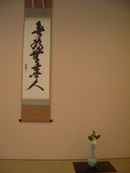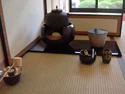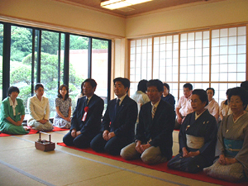 | 梅雨に入り、雨の心配がありましたが、当日はよい天候に恵まれた。九州ブロック研修会・協議会の行われた武雄センチュリーホテル和風別館での呈茶席にて、南ルートAコースのお道具を使わせて頂きました。私たちの青年部としては初めての濃茶席で緊張と戸惑いの中、九州各地よりお越しいただいた来賓の方々を交え、非常に和やかな雰囲気で実施できたと思っています。 |