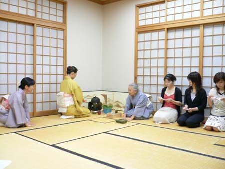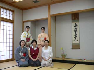 学校茶道では,浜屋先生が純心高校の顧問の先生を伴い,生徒さんとおいでいただきました。そして純心女子大学の生徒さん,顧問の先生,それから青少年ホームの生徒さんたちは,丁度お稽古の日に江口先生と一緒にいらっしゃいました。