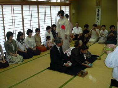 | きりしま青年部は霧島市の働く婦人の家で釜をかけさせてもらいました。一席目は17時30分から小学3年生の児童に盆略点前をしてもらいました。 2席目と3席目は青年部員が千歳盆のお点前を行いました。お客様は3席で60名の方においでいただき、またお客様にも非常に好評でした。 勿論、お家元のお軸やお茶杓の事に話題が上りましたが道具組は出来るだけ「きりしま」に因んだものにしました。 今日の鹿児島はとても暑く準備も大変でしたが、たった今ここを含めた日本の何処かで同時にリレー茶会が行われていると思うと、青年部の一体感を感じながら、お席を努めることが出来ました。 この勢いで全国大会のうねりを拡げていけたらいいなと感じました。 |
