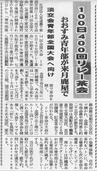 「100日400回リレー茶会」 新聞報道記事
