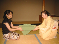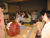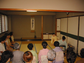 | 鹿児島支部にお染筆とお茶杓が届いて3日目のリレー茶会は、鹿屋市で行いました。 大隅半島の先生方や茶道愛好家の方々が早くから来て下さいまして、大宗匠様の力強いお筆に元気を戴いたとか、お家元様のどっしりとしたお茶杓に「うわ〜っ」と歓声をあげたりして感激して下さいました。 園児が浴衣で参加してくれたり、お茶席は始めてという方々が来て下さったりして、始めて触れるお道具や雰囲気に感動して下さいました。 平日に当たった為、夕方からのお茶会でしたのでお客様にも限りがありますし、青年部会員も数人しか集まれず、満足のいくおもてなしが出来ませんでした。 次回は各支部1日ずつにして休日だけリレーしていけば無理なく、青年部会員も楽しめるし、多くのお客様にお越し戴けると思います。回数に拘るのではなく中身を充実させた方がいいと今回つくづく思いました。 |