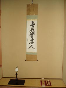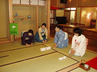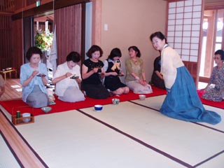 前日の準備の時点での天気予報では当日は雷雨、前回・前々回のリレー茶会が頭をよぎりました。が、おかげさまで、茶会当日は晴天に恵まれ迫田九州ブロック長、清藤副ブロック長の手により、無事お道具が対馬にリレーされて参りました。 会場は復元されたばかりの対馬出身の小説家半井桃水の生家跡「半井桃水館」の開館イベントのひとつとして開催されたこともあり、淡交会会員はもとより一般の方々もたくさん来館してくださり、館の見学と青年部会員がお運びした一碗に笑顔・笑顔のひとときでした。 なお、この日は韓国釜山協会の鄭 貴順先生も私たちと一緒にお運び等でご参加下さり、清楚なチマ・チョゴリ姿で一層会場に花を添えて頂きました。全国大会に向けての大きなうねりの中で、国境の島対馬青年部のともし火が京都まで無事に届きますようにと、祈りを込めて迫田ブロック長にお道具を託しました。 迫田ブロック長・清藤副ブロック長・鄭 貴順先生には会員一同感謝の気持ちでいっぱいです。「ありがとうございました。」 |