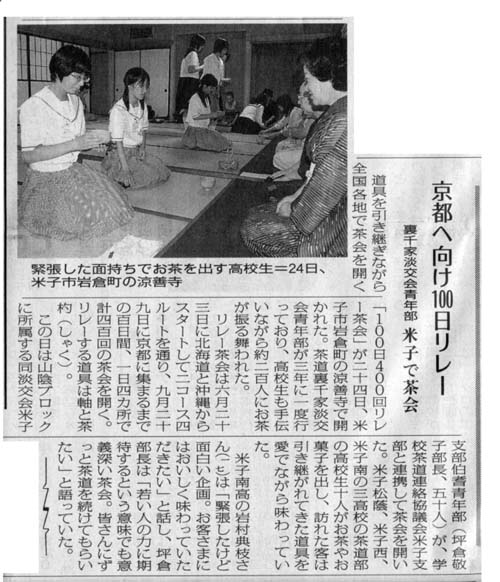 「100日400回リレー茶会」 新聞報道記事