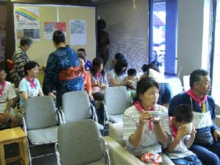 | 吉田民族資料館第1回目の公開講座と日程がかさなり、受講生の方々にもリレー茶会にご参加いただきました。また、ジャンボリーの2日目でしたので昨日につづいてジャンボリー参加者にも参加いただきました。 点前座は この会館にある 斜めの8畳の畳を利用しその上に設置しました。 お菓子も地元の吉田町のお菓子を使い、数人でしたが吉田町の茶道指導者にもお越しいただきました。資料館の職員の方々にもご尽力賜り、心より御礼申し上げます。 とても暑い日でしたが、一服の清涼感を楽しんでいただけたかと思います。 |
