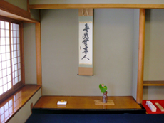 | 岡山支部青年部連絡会で主催し支部青年部としては3日目、リレー茶会としては51日目。京都での全国大会に向け、折り返し歩みだしました。 「祈り」・一碗から平和を・未来を語り、未来を創り、未来を生きようのテーマを表現できる場として岡山市中心に位置する蓮昌寺を選び、学校茶道に協賛していただき、中学生以下の生徒、幼児を招待しました。子供たちの日頃の挨拶、礼儀作法の稽古を実践する場になりました。また、初めて参加された若い方から、茶席に同席する中で和を感じることができ、茶会の楽しさを味わうことができたと感想をいただきました。 岡山空襲の被災の石塔が残る境内の庭を眺めながら、「平和」という銘の鳩の繪の茶碗を用い、平和が永遠のテーマであることを確信しました。全体の道具に関しては、涼を感じていただけるよう、釣瓶で汲み上げた湧水が清流となり、海に至る自然の情景を思い描きながら、お菓子に隠した魚を四手網漁で捕まえるような、楽しい趣向にしました。 |