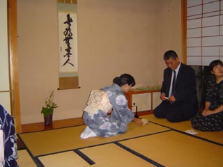 | 突然の猛烈な夕立の中、仕事帰りの会員の皆さんにおいでていただきました。 平日の夜でしたので、人数は監事の先生1名と会員15名と少なく残念でしたが坐忘斎お家元のお茶杓と鵬雲斎大宗匠のお軸を使わせていただき、薄茶を差し上げました。 テーマの「祈り」が難しく、「涼」のテーマに変更して、水指をガラスに、お菓子は葛焼で銘を「新涼」と少しでも涼しさを感じていただこうと考えました。 2席目にはお道具の引継に来られた徳島の青年部の3名にも入っていただきました。無事にお道具の引継が終わり安心いたしました。 全国大会でまた拝見できますよう願っております。 学茶との連携はありませんでしたが、会員で高知女子大学の方が1名参加されました。 |