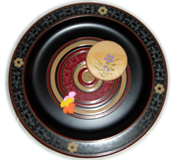 濃茶席はリレー茶会のお道具を使って厳かに、薄茶席では日本地図が彫られている友集棚を使って、「輪」に因んだお道具を集めて華やかにと、会員が考えたご趣向でおもてなしをさせて頂きました。