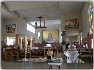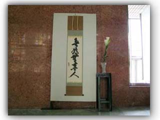 この厳かな会場には、堂本印象による聖母マリア、高山右近、細川ガラシャ夫人の絵が中央に配されています。そのため、平和への願いとしてのキリスト教をテーマとし、千利休ゆかりの地であり、南蛮貿易や日明貿易で栄えた堺を抱える近畿第二ブロックらしさを道具組に考慮いたしました。