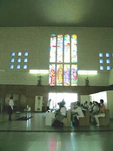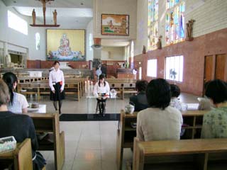 大阪カテドラルの大聖堂内において、近畿第二ブロック担当席を開催いたしました。9月とはいえまだまだ残暑厳しいこともあり、総ガラスの点茶棚を用いての冷茶席をいたしました。