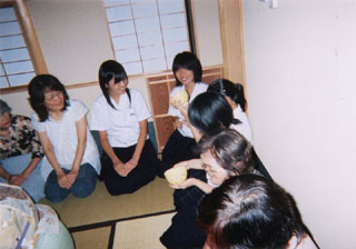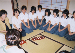 | 今回「祈り」というテーマをいただきましたので、月見の趣向で、お菓子は手作りの豆腐入り月見団子をご用意致しました。 平日にもかかわらず、小綿幹事長始め140名ものお客様にお越しいただき、とても嬉しく心より感謝申し上げます。四畳半のお茶室で開催致しましたので、ゆっくり座っていただくことができなかったのが、大変残念でした。 学校茶道との連携は、開催日が9月ということで、すでに授業が始まっていることから、お客様としてお越しいただけるよう開催時間を15時からとし、夏休み前の7月初旬に先生方にご案内を差し上げました。明石市及び三木市の高等学校5校から40名以上の参加がございました。皆さん眼を輝かせ、とても熱心に、そして丁寧にお道具を拝見されている様子に、初心に帰ることの大切さを改めて実感致しました。 御家元、大宗匠のお気持ちが託されたお道具をリレーし、ひとつのものを作っていくという大きな輪の中に入ることができた喜びを深く感じた一日でございました。 9月30日、京都にて全国の青年部の皆様とご一緒に、再びお道具を拝見できるのが今から楽しみです。 |